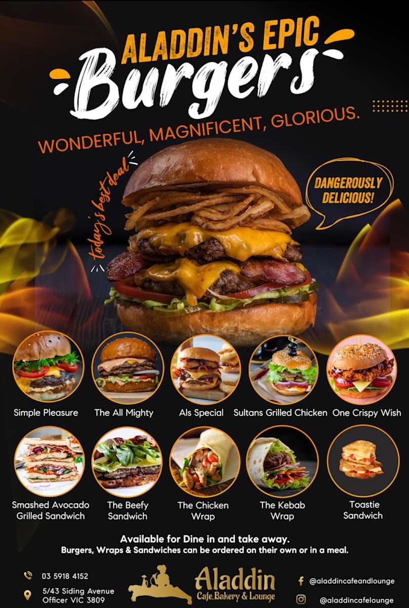Welcome to Aladdin Cafe, Bakery and Lounge, a hidden gem located in Officer, VIC. This charming cafe stands out with its quirky decor and a vibrant Aladdin theme that delights both kids and adults alike. The menu is a culinary journey that offers a delightful blend of flavors, featuring mouthwatering dishes like a luscious Turkish breakfast with eggs and Sucuk that has garnered rave reviews.